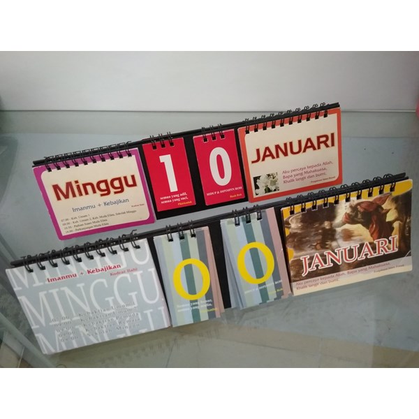 kalender iklan setahun. Berbagai macam, kalender meja, dinding, dsb